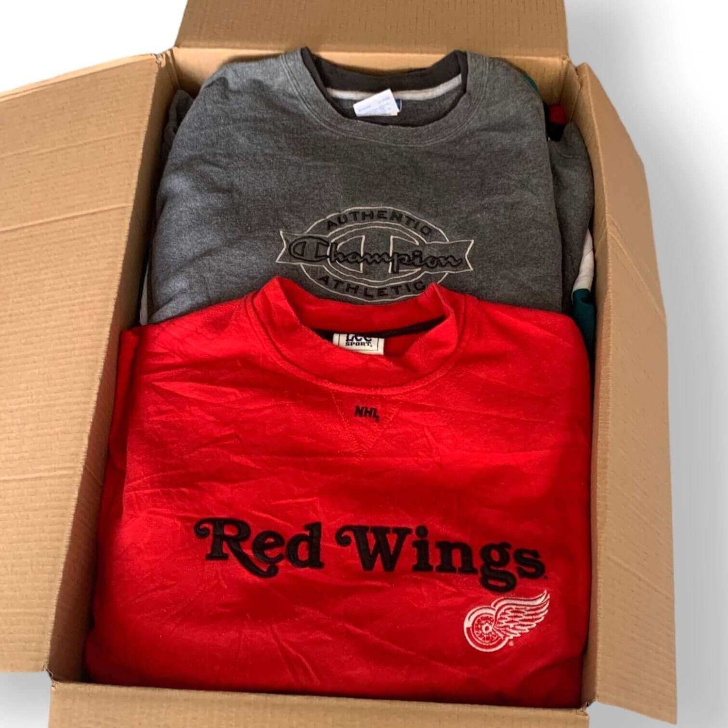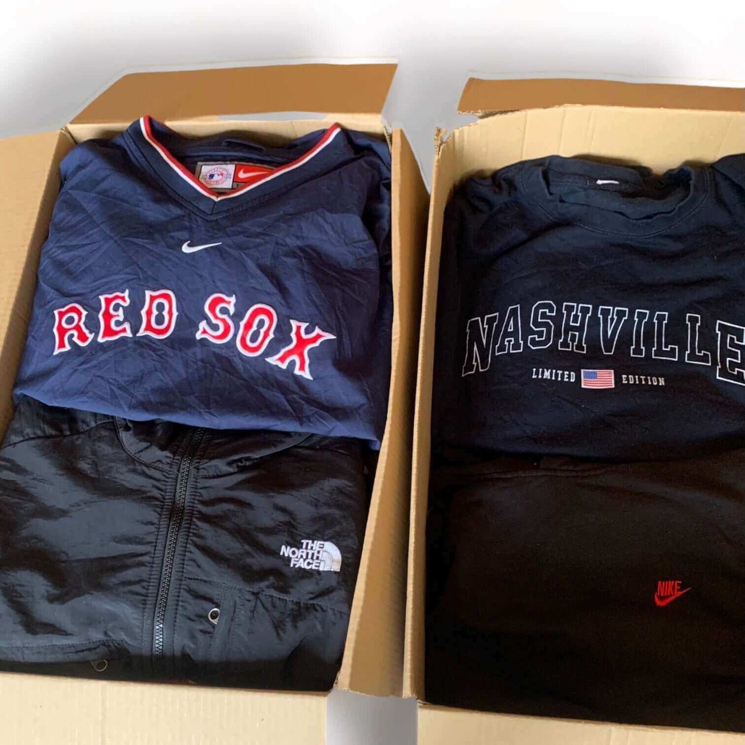 Box par vidéo : nous proposons également ce système de vente qui sont des lots de vêtements vintage par 30 pièces exact qui apparaissent dans les vidéos disponibles sur le site internet. Celles-ci contiennent des vêtements vintage, de la marque, et un mix entre des pulls, des coupe-vent, des polaires et des pantalons.